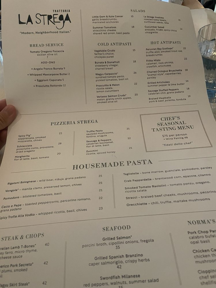 La Strega in Las Vegas offers a casually upscale dining experience with a range of vegan and vegetarian options. With a full bar and women-owned establishment, La Strega is welcoming to all. The menu features a variety of brunch options, including Eggs in Purgatory and Burrata & Farro, as well as seafood dishes like Salmon Tartare and Nigerian Prawn Spiedini. Customers rave about the welcoming staff, standout dishes like Orecchiette and Spicy Pig Pizza, and the overall charming ambiance of the restaurant. Whether you're looking for a special dining experience or just a delicious meal, La Strega is a top choice in the city.
